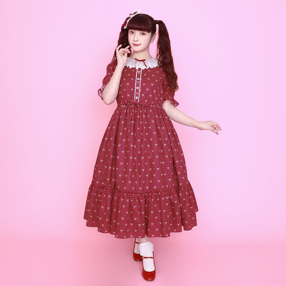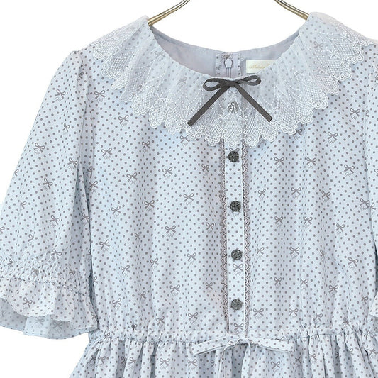 Little Dot Ribbon Lace Collar One Piece