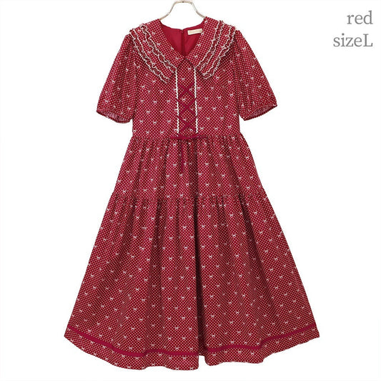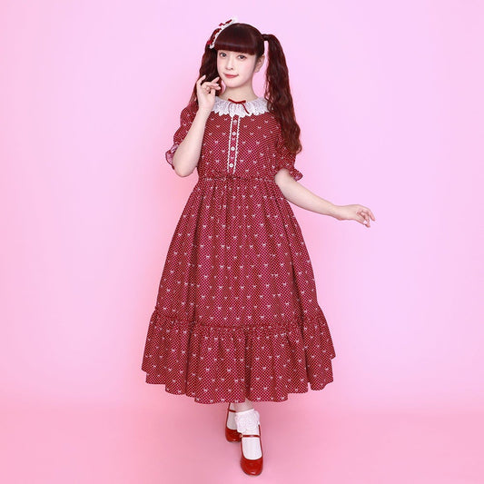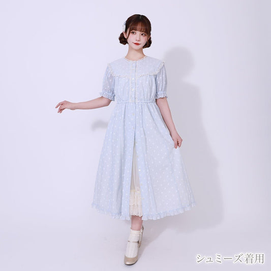 Little Dot Ribbon Frill Collar One Piece