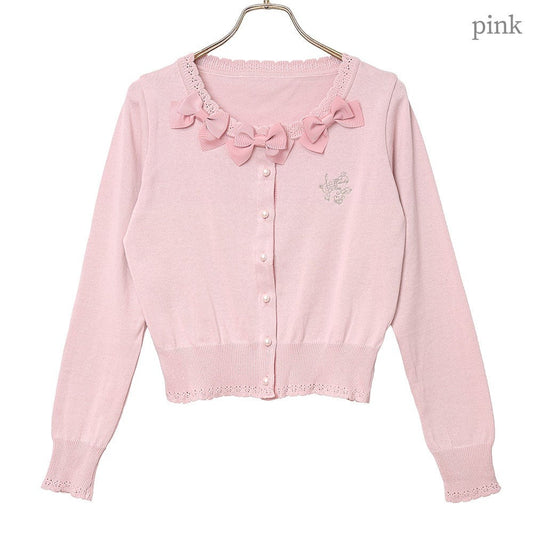 Triple Ribbon Cotton Knit Cardigan