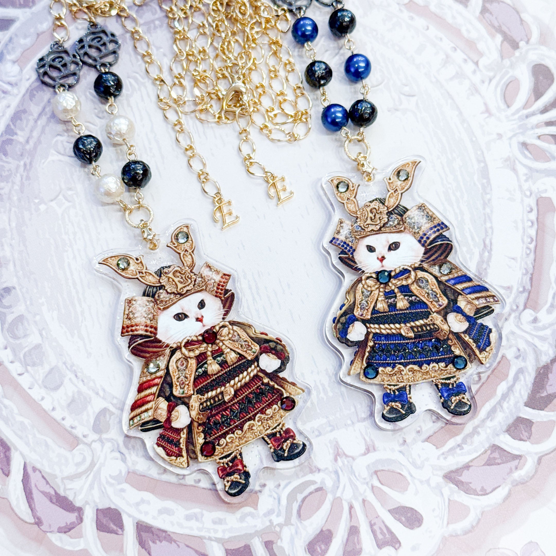 Gorgeous Armor Wearing Twins of Kittens Necklace